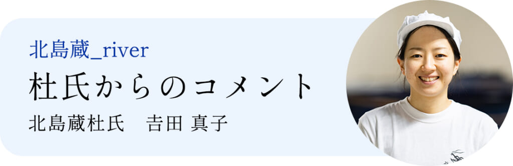 北島蔵の方は上立ち香にマスカットや洋ナシのような爽やかな香りを感じることができ、口に含んだときには、ジューシーな広がりがあるが、キレはとても良くスッキリきれいな味わいを目指します。