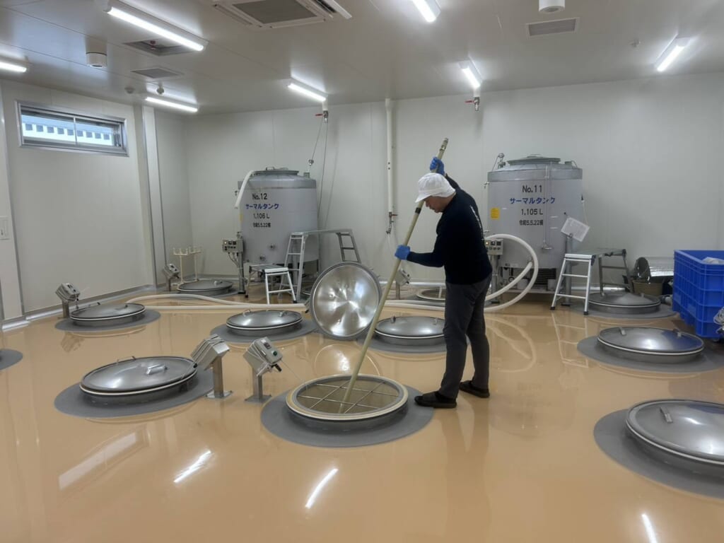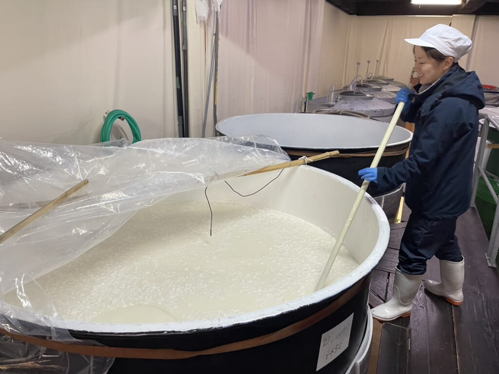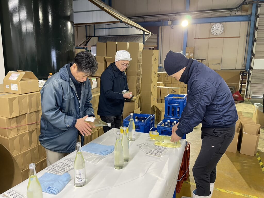 杜氏は、おいしく飲んでいただけるように細心の注意を払って タンク内のもろみの管理をし、「よし!」の合図で、 上槽・瓶詰・出荷を一気に行っていくため蔵の全員が総出で 夜通し作業を致しました。